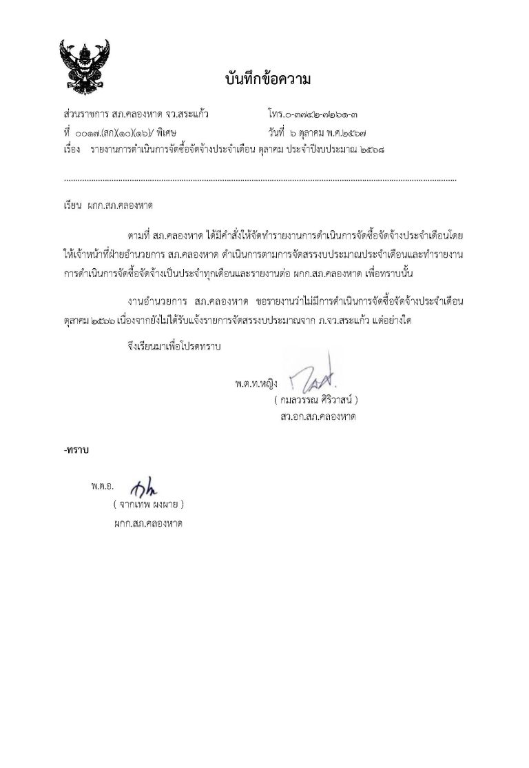 หมายเหตุ เดือน ตุลาคม 2567 ไม่มีผลการดำเนินการจัดซื้อจัดจ้าง